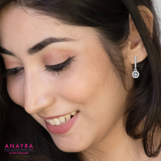 Sterling Silver American Diamond Hoop Dangle Earrings