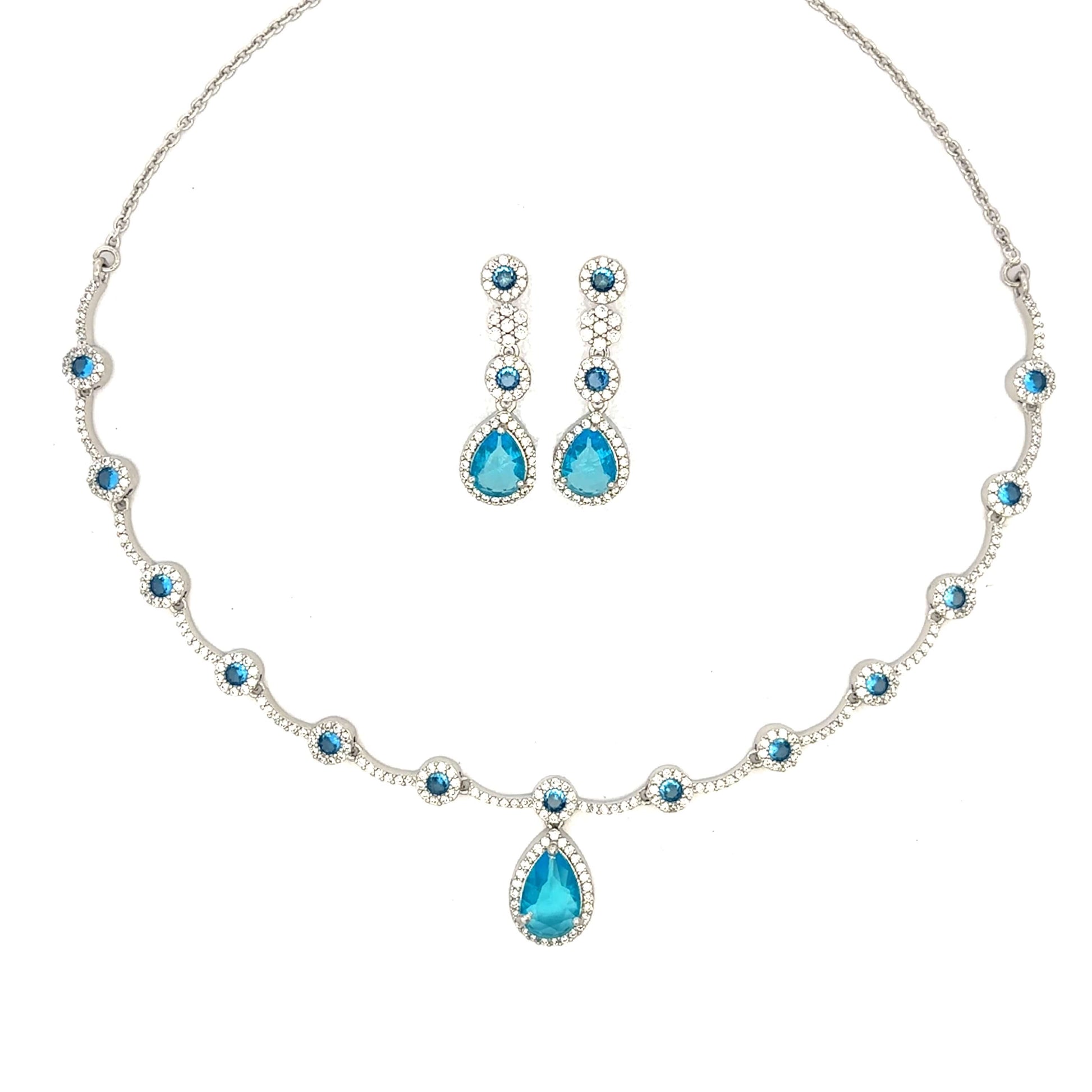 Elegant Teardrop Sky Blue Crystal Choker Set
